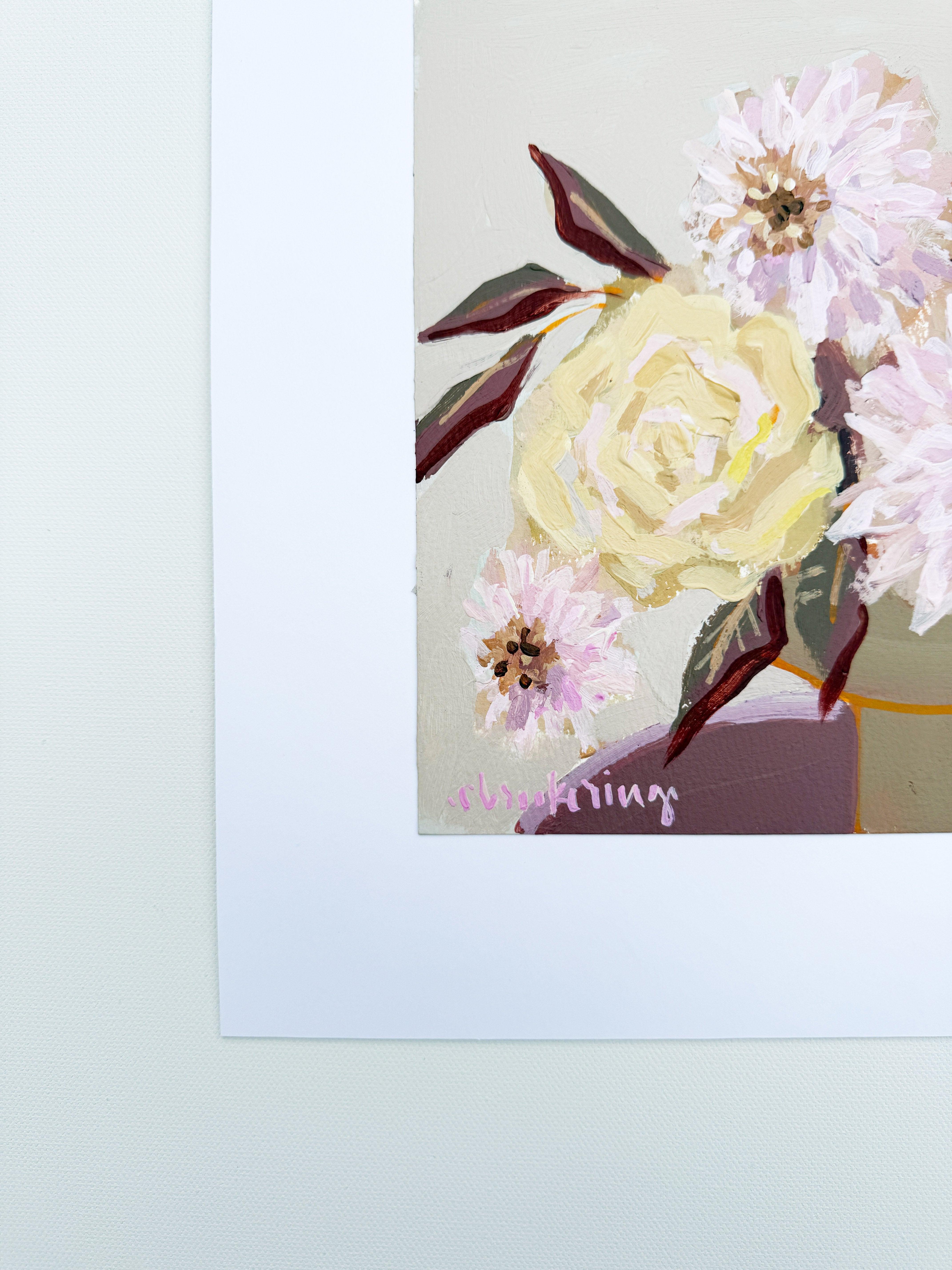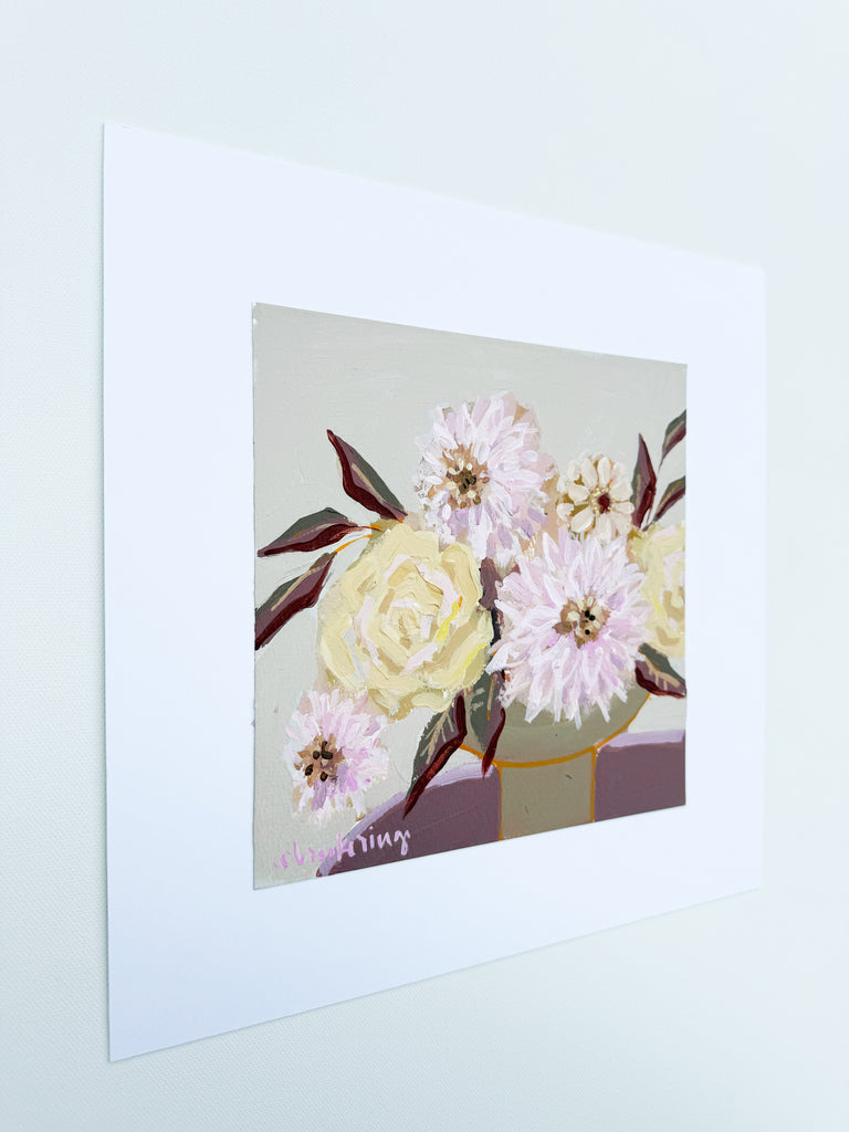 Bright and joyful, these original acrylic florals on paper celebrate the beauty and wonder of every season. Each piece is painted with expressive brushwork and layered color, bringing a fresh, modern take to a classic floral. These small works are perfect for gifting, collecting, or adding a touch of cheer to your home any time of the year.